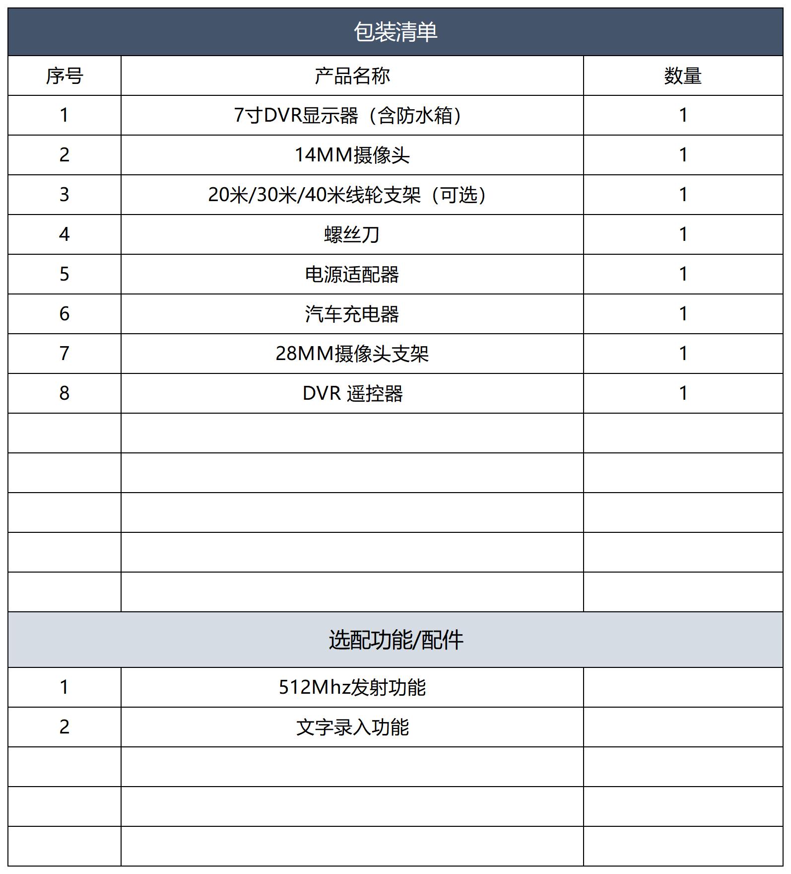 ● 选配功能:计米功能、512Hz发射器、文字录入功能