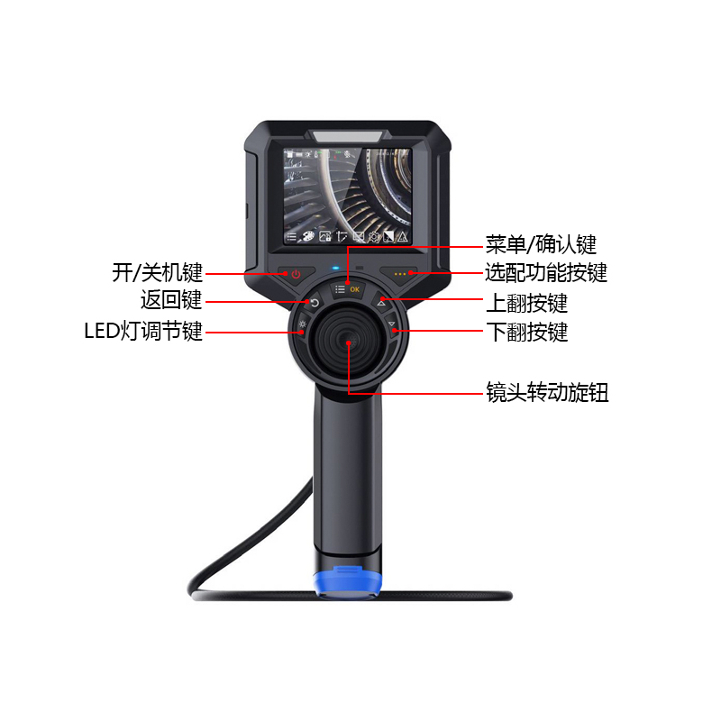 ●镜头可以360°控制转动,检查时可以控制镜头转动来查看内部细节部位。